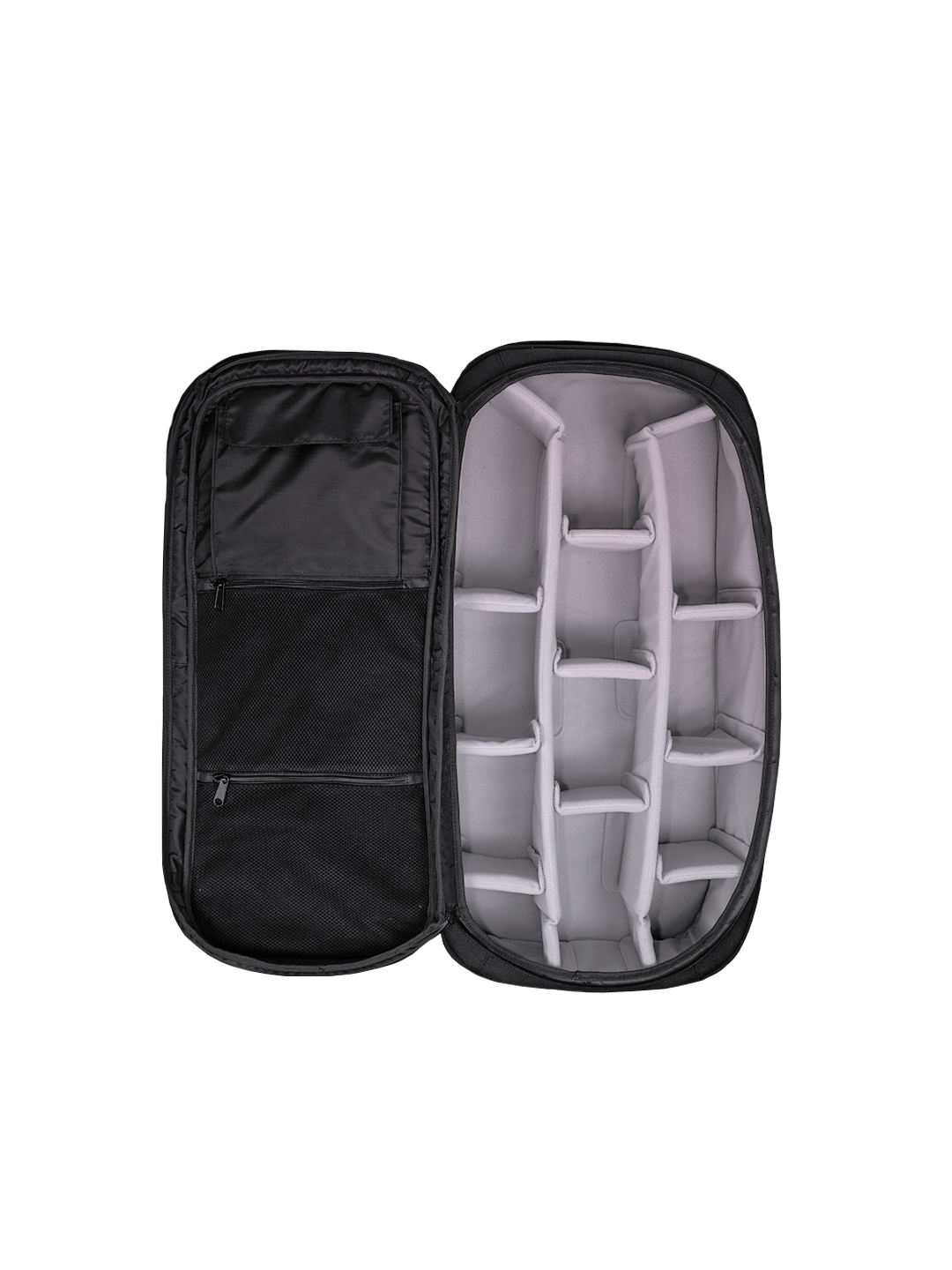 Zur vollständigen Anpassung sind neun zusätzliche Trennpolster im Lieferumfang enthalten, mit denen Sie das Hauptfach unterteilen oder die Unterteilungen abdecken können.