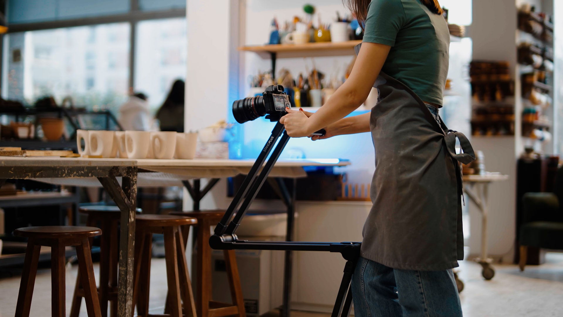 Aufnahmen von oben sind unerlässlich, um in die Szene einzutauchen und Ihrem Publikum zu zeigen, woran Sie arbeiten. Mit klassischen Stativen ist das nicht möglich.
