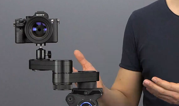 Schienenloser tragbarer Slider, der der Kamera eine viermal größere Bewegungsfreiheit lässt. Keine Batterien oder Ladegeräte erforderlich; eine vollständig mechanische Lösung dank des einzigartigen Doppelarmdesigns.